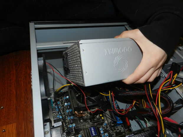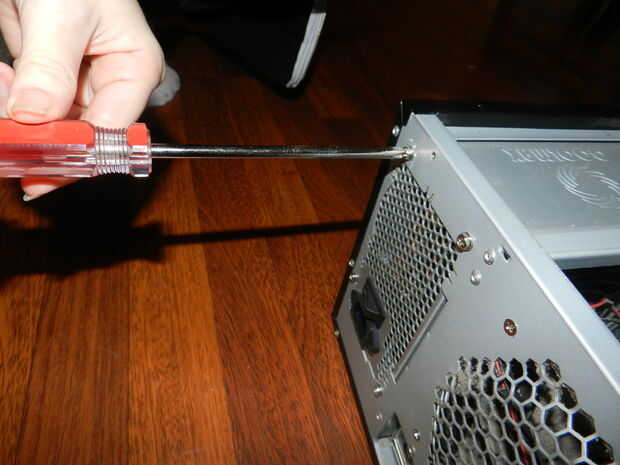 Después de quitar el tornillo de montaje que simplemente se levante a la vieja energía de la fuente y sustituirla por una nueva. (Figura 7) Una vez que esté colocado correctamente, vuelva a colocar los 4 tornillos en la parte posterior de la fuente de alimentación y el caso.