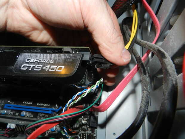 Una vez hecho esto tienes que desconectar todos los conectores de alimentación de los dispositivos en el equipo excepto la P1 10 x 2(20 pin) de la placa base. Usted necesitará conectar para encender la fuente de alimentación. Puede probar la fuente de alimentación con él todavía enchufado. En las placas base más recientes habrá un extra de 4 pines (2 x 2) para un total de 24 pines y que soporte PCI express tendrá generalmente un conector de 4 x 1 fuente de alimentación adicional para tarjetas de vídeo a través de la placa base y que necesitará ser desconectada si corresponde. Comenzar desconectando el gran molex de 4 pines (4 x 1) de la unidad de CD/DVD y el molex de 4 pines (4 x 1) grande desde el disco duro (IDE). Luego desconecte el enchufe de molex de 4 pines (2 x 2) de la placa base y los 6 pines (3 x 3) molex conector de la tarjeta de video.
