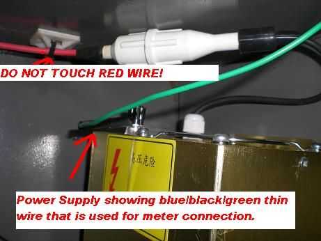A. ver la conexión del cable de alimentación. No toque el cable rojo. Tiene muy alta tensión que es letal.