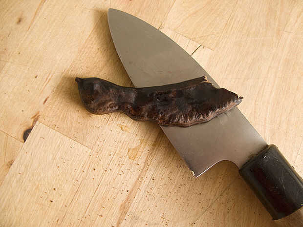 Una vez hervidas, las vainas se pueden rajar con un cuchillo afilado, lateral para abrir las semillas. Vas a estar comiendo las vainas, no las semillas. Incluso puede masticar en las vainas en este estado como una especie de snack.