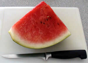 En primer lugar te darás cuenta estoy trabajando en un octavo de una sandía, esto es más fácil que un medio.