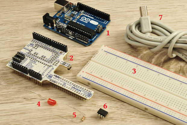 7. cable USB B (depent qué tipo de placa Arduino se utiliza)