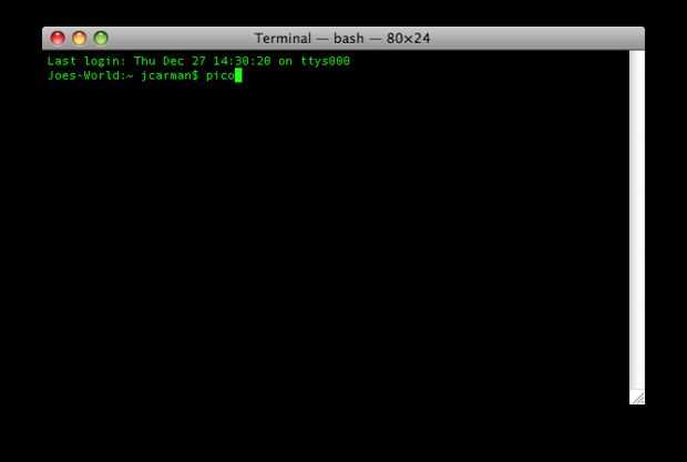 abrir el programa Terminal en la carpeta de utilidades, a continuación, escriba pico en el símbolo del sistema.