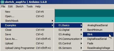 Ir a la barra de herramientas superior y abrir archivo > ejemplos > 01 conceptos básicos > Blink