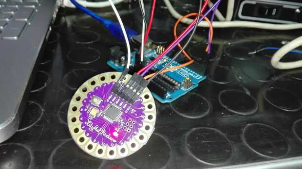 esta fue mi primera vez trabajando con un Arduino Lilypad. He sido ganas de probar algo que tratar con circuitos suaves por un tiempo ahora. Este proyecto es lo que se me ocurrió. El concepto se basa en mi amigo Ethan Dicks del emergente proyecto de