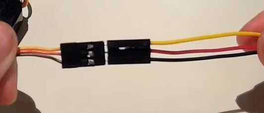 En primer lugar tomar el servo y los cables de puente y conectarlos a ella para que puedan conectar el servo a la arduino. Estoy conectando los cables del mismo color para que no se confunda más adelante. En mi caso (y en la mayoría de sevos) es el código de color de los cables: