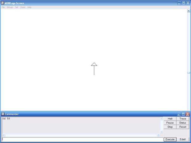 Esto gira la tortuga 90 grados a la derecha y hace que la tortuga vaya 50 hacia adelante.