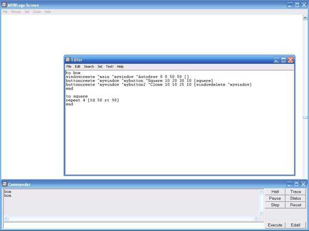 Autodraw es que el nombre para mostrar de la caja y mywindow es el nombre de que MSW Logo se utiliza para otras cosas.