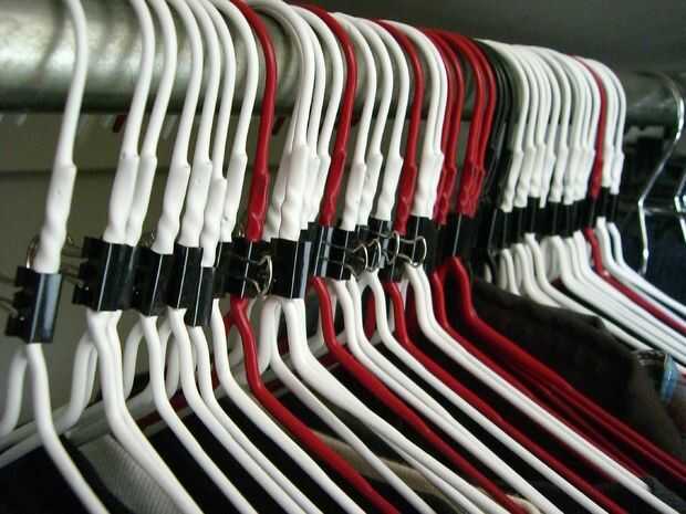 Con este sistema debe ser capaz de encajar una gran cantidad de ropa en un armario muy pequeño, (suspensiones de rojo son favoritas camisas, suspensiones de negro son camisas temporadas)