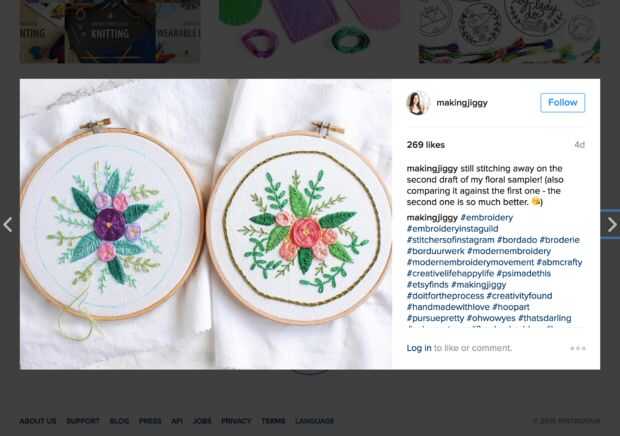 - Desea una mezcla de hashtags pequeños y grandes. Por ejemplo, yo uso #embroidery que tiene sobre 2 millones de fotos en su alimentación - también #bordado, #broderie y #borduurwerk, que son esencialmente el bordado de la alimentación en diferentes idiomas. Pero también uso #modernembroidery, #contemporaryembroidery, #floralembroidery y #hoopart que me permita terminar en feeds de hashtag más pequeñas y más específicas.