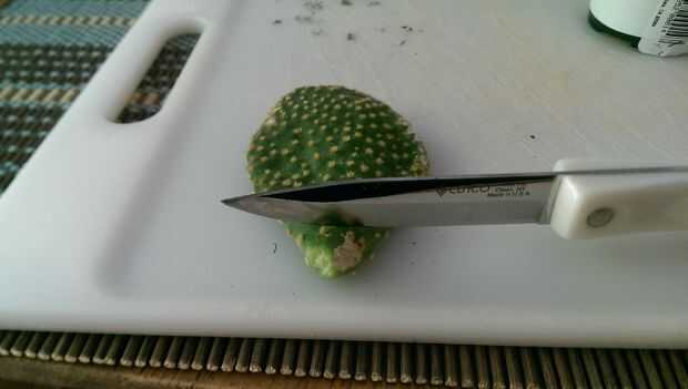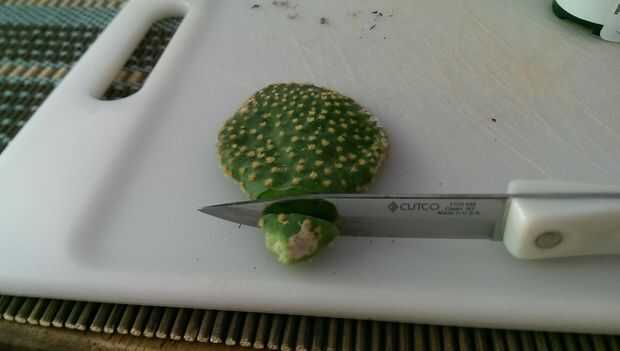 Limpio rasgue su cachorro o de la hoja, tratando de tener incluso cortes en ambos lados. Para suculentas, haya terminado! para cacti, necesita hacer por más corte. Cortar el cactus cerca de 1/2 pulgadas de la lágrima. ¡ Felicidades! Haya casi terminado!!