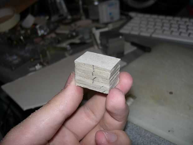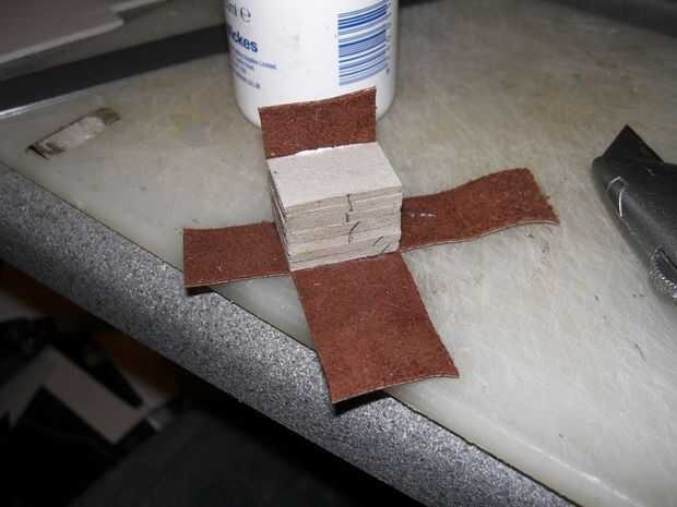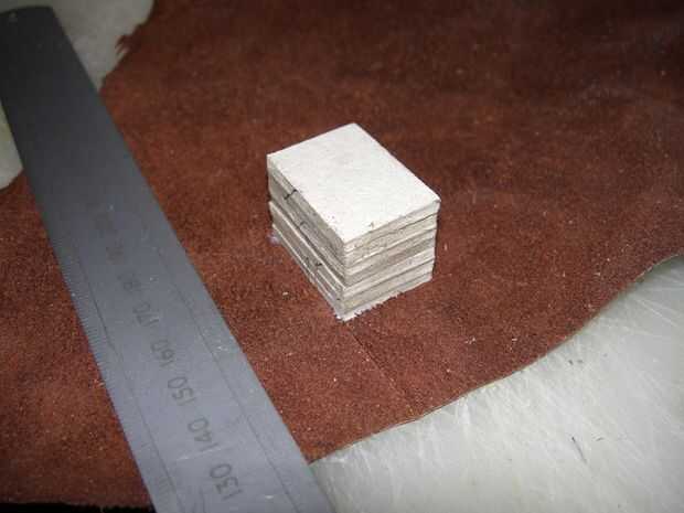 A continuación, tomó un pedazo de cuero y lo envolvió alrededor del bloque de la tarjeta. Una vez que en entonces pude sentir donde estaba la raja y cuidadosamente corte un orificio con un bisturí.