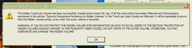Una vez que termines, un mensaje de alerta aparecerá, alerta sobre el volumen oculto y cómo usarlo.
