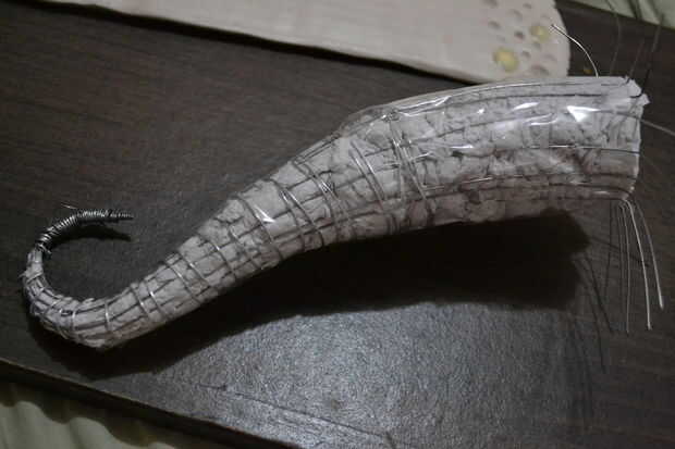 Aplicar sobre la piel, o donde quieras esculpir en (envoltura de plástico, se aferran) tanto como sea posible a la forma que desee. luego dejar seca por un tiempo, hasta que se puede tocar sin pegarse a los dedos, entonces ahora usted puede formar como usted desee, ser muy rápido porque se seca más rápido, especialmente si pones demasiada harina.