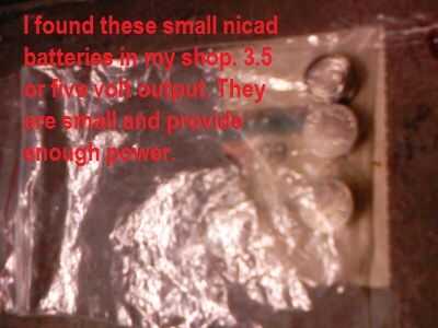 Esta bolsa de baterías pequeñas fue puesta alrededor de la tienda. Llevan la energía necesaria para realizar la alarma. Creo que el voltaje es de 3,5 voltios, pero puede ser 5 voltios. La alarma funciona con una amplia gama de voltajes y en el mercado de la electrónica el vendedor demostró con una batería de nueve voltios y fue demasiado fuerte para mi gusto. Estas baterías pequeñas hacen el truco sin excesivo volumen. Y son peso ligero y fácil de instalar en el prototipo sin agregar peso sensible al dispositivo.