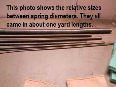 Sin saber que primavera tenía la tensión correcta y el mejor diámetro, tiene una gran variedad. Trataban de una yarda de largo (un metro). Sabía que quería introducir en un tubo para proteger los pelos de la pierna de quedar atrapado en ellos.