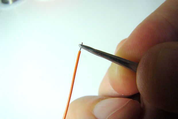 Utilizando el extremo de un par de pinzas, hacer bucles en los extremos pelados del cable y ajuste en los pernos o los alambres componentes. Si usted tiene otros cables ya estén soldadas en su lugar, puede ser útil para alimentar los cables por debajo de los hilos existentes; Este método le ayudará a mantener los cables de nuevo en su lugar antes de que les de la soldadura.