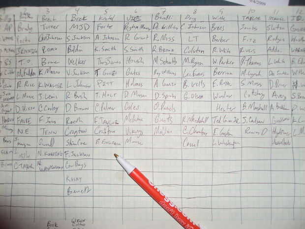 Su referente principal debe ser tu propia hoja de puntuación de jugador y plan de redacción. Cuando el proyecto es sumamente importante escuchar que ha sido seleccionado y cruzar su hoja de clasificaciones de jugador, como se muestra en el cuadro de clasificación del jugador abajo. Este fácilmente le ayudará realizar que usted quiere cuando el reloj está en usted. Otra cosa que debes hacer es realizar un seguimiento de su propia Junta de proyecto y escriba que todos los demás elegido en cada ronda. Como se muestra en la siguiente imagen de proyecto, saber lo que otros ya han elegido puede ayudarle a diseñar estrategias de cómo desea escoger.