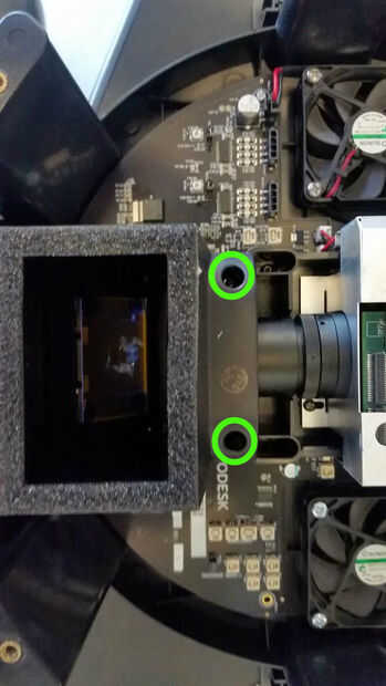 Hay dos tornillos de plástico asociar el uso de cubierta del proyector un Nº 10 Torx para quitar a estos. Creo que si eres cuidadoso que también puede utilizar una llave de allan M3 a retirarlos.