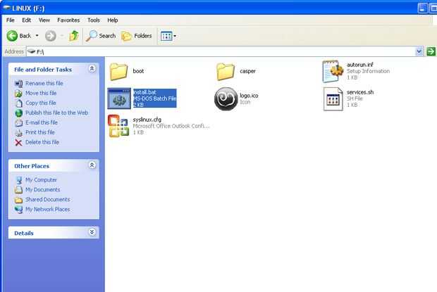 Ir a la raíz de su unidad flash y haga doble clic en el archivo "install.bat"