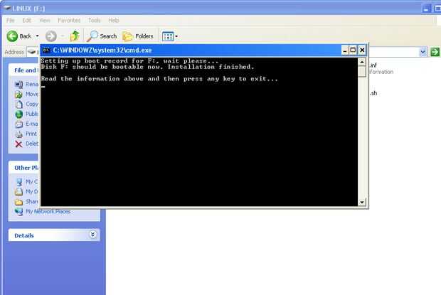 Hit se aplican, entonces mira tu pendrive, allí debe estar un archivo llamado "ldlinux.sys". Si no es así, trate de hacer arranque otra vez. Si usted todavía no puede conseguir que funcione, probablemente hiciste algo mal. Releer los pasos y vuelva a intentarlo.
