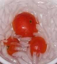 Los tomates que se utilizan para hacer salsa deben pelados (pelado) antes de usar. De lo contrario, las pieles serán duros y masticables y no muy delicioso.