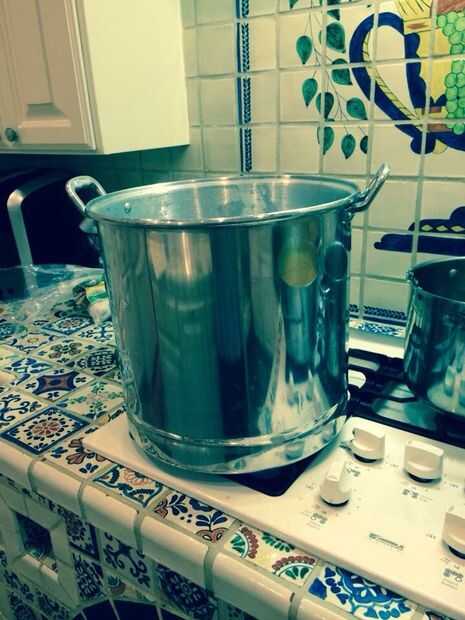 Paso 6 - llenado de paso siguiente una maceta mas grande con suficiente agua para cubrir frascos por 2 pulgadas y hervir.