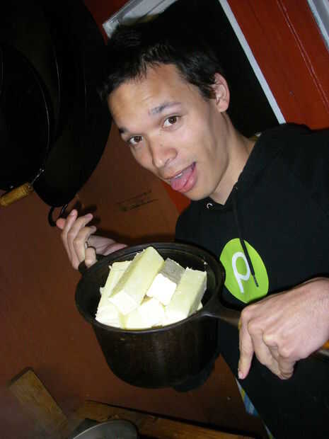 Ahora todos vendrán y empezar a cocinar cosas, sólo para unirse a la diversión. Nathan haciendo galletas para sus compañeros en una corporación importante. Toma un montón de mantequilla para hacer galletas que muchos.