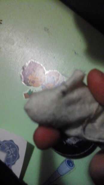 A continuación tendrá que añadir un poco de agua en el dedo con el paño. Esta es la parte más delicada, solo desea un poco de agua. Consejo: use el dedo opuesto dab en el agua y limpie el agua de ese dedo en el dedo de paño.