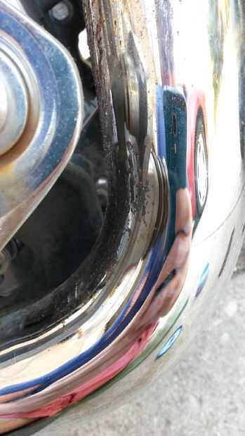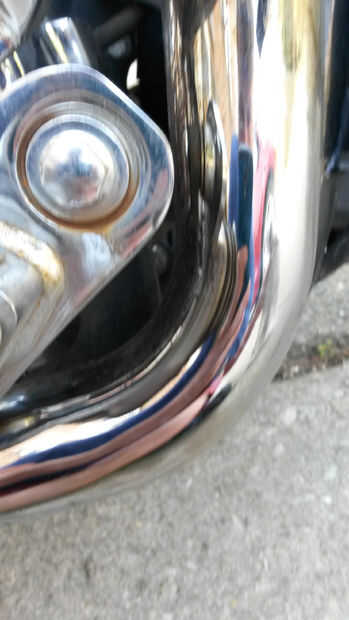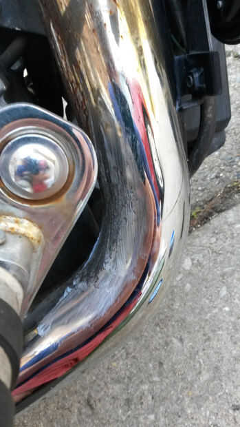 Mencioné anteriormente que había descuidado Polaco mi moto durante bastante tiempo. La curva en esta tubería está parcialmente dañada así que sabía no limpiar perfectamente pero yo sabía que podía conseguirlo mejor con un segundo intento.