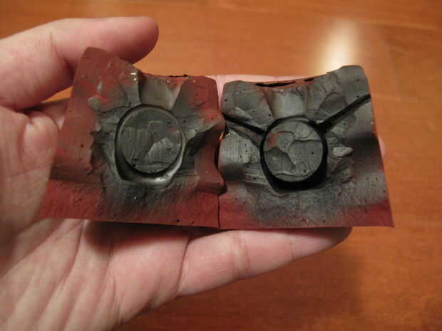 Este es un paso bastante sencillo, pero el punto principal que quiero transmitir aquí es que desea asegurarse de que tiene algún tipo de lubricante en su molde. En este caso estoy usando polvo de grafito (toma un lápiz y utilizar un cuchillo para raspar la cabeza para que acaben con un pequeño montón de polvo negro fino), y realmente no tienen sugerencias para cualquier cosa que funcionarían, así que yo diría que ir con grafito en polvo (es bastante fácil de hacer, de todos modos). Si se salta este paso, usted puede terminar con bastidores que parecen han venido de una fábrica de bolas de golf.