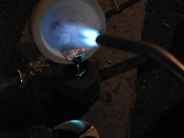 ADVERTENCIA: Trabajan fuera, usar gafas de seguridad, mangas largas, pantalones largos, zapatos cerrados con punta, etc.. Utilice cualquier y todas las precauciones posibles evitar que lastime a sí mismo o a otras personas a tu alrededor. Asegúrese siempre de que tus moldes estén completamente secas. Si no, el agua pasará a vapor al instante y dispara metal fundido en todo el mundo, incluyéndote a ti.
