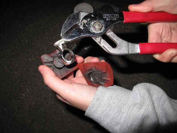 Todo lo que queda por hacer es sacar las bandas de caucho, abre el molde y saque su casting! Ahora no que brillante... pero no brillante. A pulido y!