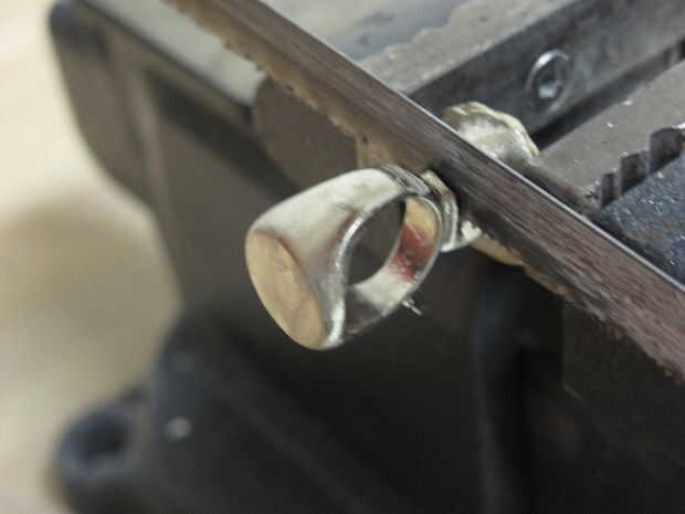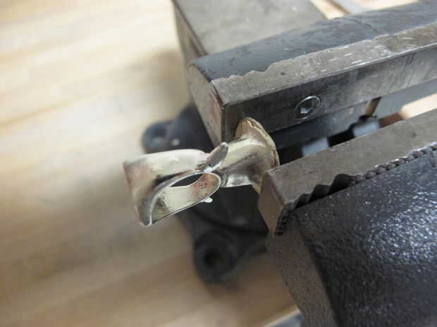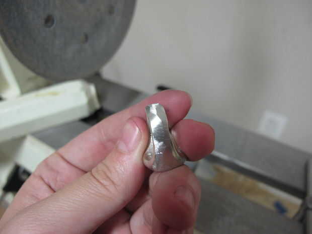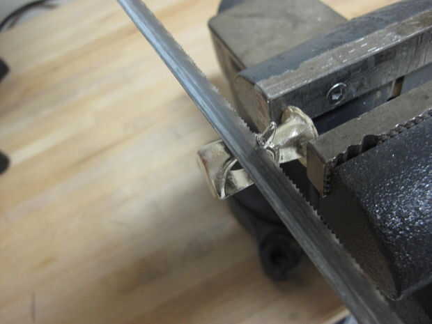 Primero, corte los bits extras (en mi caso el metal que llena los orificios de colada y aire) con una sierra, cortadores de alambre, o qué has. Desde este punto, sus dos principales opciones son presentación y lijado. Sucede que tiene un torno y una almohadilla de lijado así utilicé, pero fácilmente podría utilizar un archivo para bajar rápidamente las brocas.