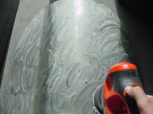 3. presionar ligeramente o usando sólo el peso de la lijadora. Este método también funciona bien, pero tarda más. Sin embargo, la batería duró más tiempo con este método. Yo personalmente prefiero este método, pero no funciona para rayones moderadas.