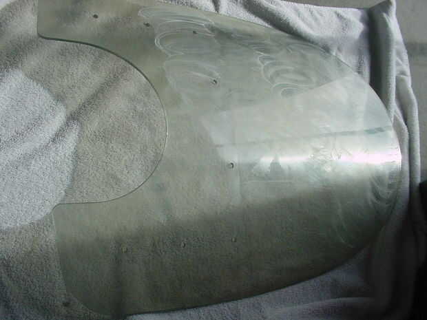 Coloque el parabrisas en un paño suave y limpio independientemente. Las vibraciones de los bordes del parabrisas en la alfombra realmente traerá polvo encima y en el parabrisas. No quiero pulir con polvo, confía en mí!