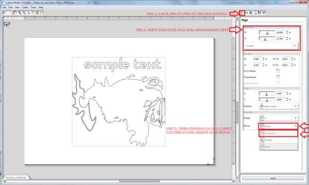 Abrir la configuración de página y configuración Página/rodillo de la hoja del vinilo de la entrada. Espejo de tu imagen por lo que será en su orientación correcta de la camisa.