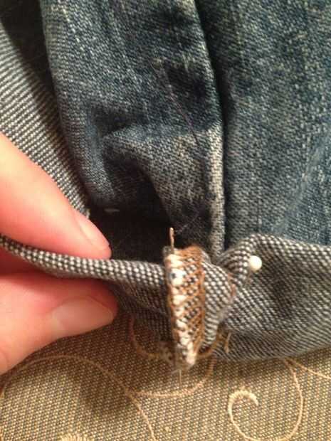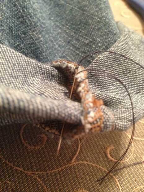 Los lados son más fáciles de coser a las zonas centrales, en mi opinión. Meter la aguja por dentro si el brazalete, en el exterior (me parece mejor trabajar en la costura y esconder el hilo). Ahora coser desde el exterior hacia el interior del agujero de la pierna (se puede quitar pin en este punto). Mantenga coser desde dentro del agujero de la pierna hacia el exterior del manguito, asegurándose de esconder los hilos de rosca exterior. Suba al coser, ir tan alto como sea posible y el trabajo hasta el punto de inicio. Ate y corte el hilo. Repetir al otro lado.