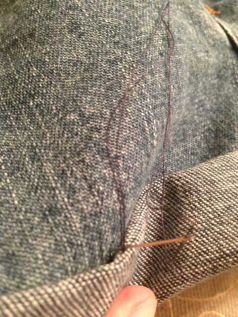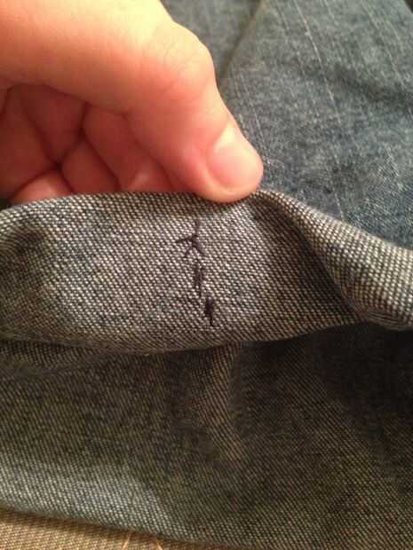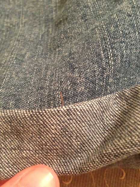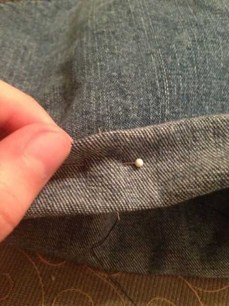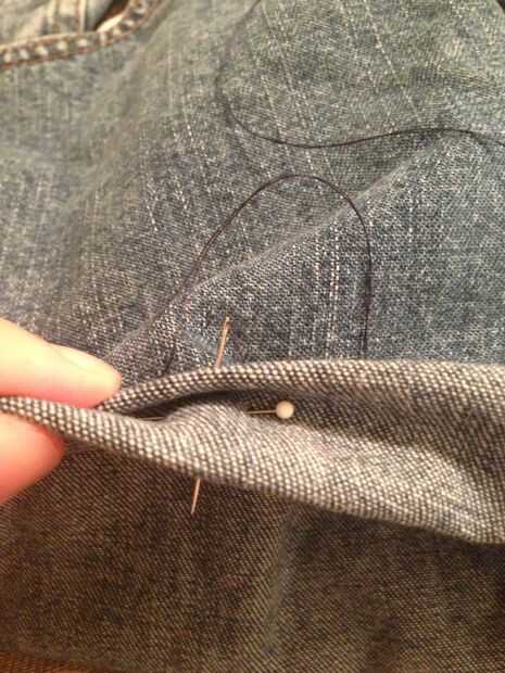 Poke la aguja desde el interior de la banda en el interior del agujero de la pierna. Aquí está la parte difícil. Ver desde el interior hasta el primer doblez del manguito, no atraviesan la tela visible y volver a través de (probé mi más duro en explicarla). Usted puede remover el pasador. Repita su forma de trabajo una vez más. Cuando tan cerca como sea posible, meter la aguja a través de la tapa de la banda y luego a la pierna del agujero un poco más (no demasiado). Trabajo hacia abajo, atar un hilo de corte. Repetir la costura a la otra pierna.