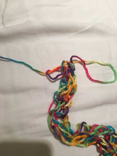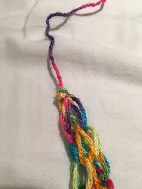 Para cerrarlo, poner el hilo por los agujeros de la cadena y deja una pequeña abertura. Aquí es donde llevar el hilo a través de y tire firmemente. Hacer esto para ambos lados (Desempaquete el pulgar gira y uso hilo demasiado).
