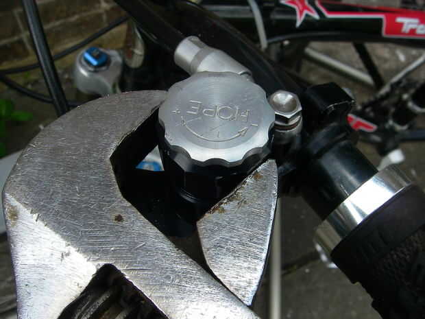 Soltar la tuerca grande Polígono (casquillo del cilindro maestro) en la palanca de freno con una llave de 26mm.