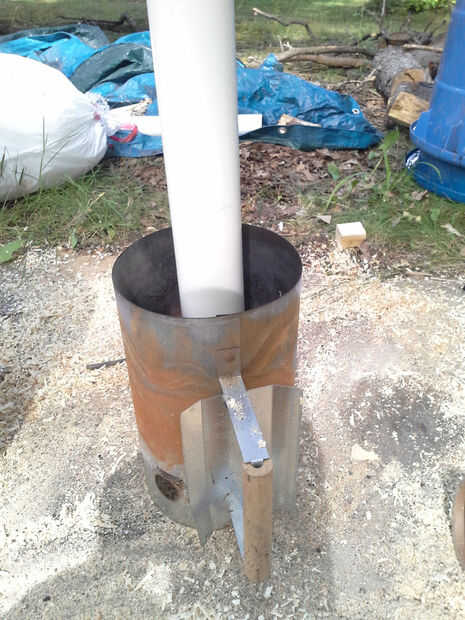 Paquete de aserrín bastante firmemente alrededor del exterior del tubo.
