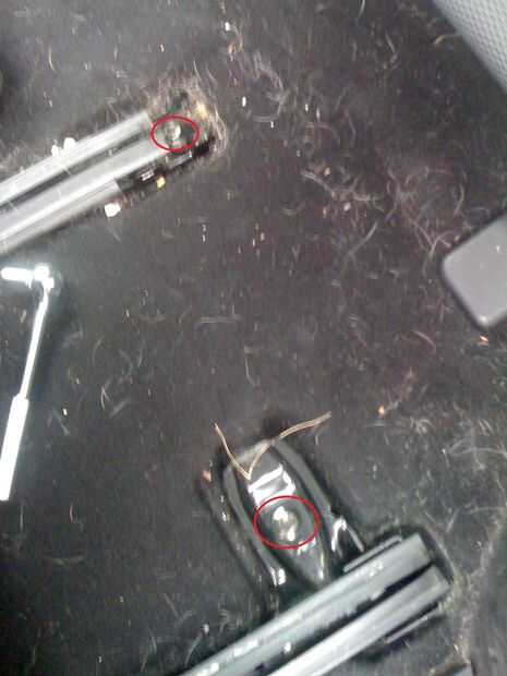 La forma más sencilla de hacerlo es deslizar que los asientos hacia atrás, encontrar los dos tornillos delanteros y utilice una llave de 14mm para eliminarlos.