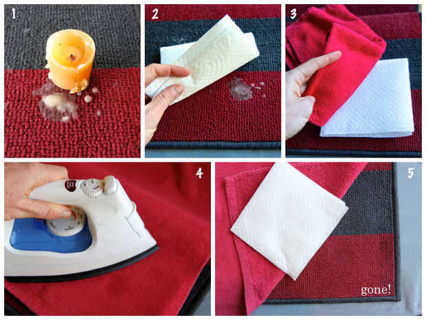 - Si una mancha persiste después de que la cera se ha ido, usar un limpiador de tu alfombra favorita, apropiado y luego hasta que la mancha se quita.