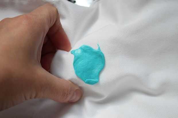 Coloque un cubo debajo del área engomado, con pocas capas de tejido como sea posible (es decir - en la pernera del pantalón).