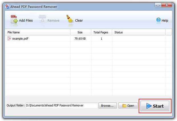 Finalmente, vas a tener que configurar la carpeta designada. Se trata de donde desea que el archivo a guardar una vez que el programa ha eliminado con éxito la contraseña. Una vez haya seleccionado la carpeta, vas a estar dispuesto a dejar que el programa abre el archivo PDF. Todo lo que tienes que hacer es haga clic en el botón "Start". Encontrará este botón en la parte inferior de la interfaz. Después de hacer clic en el botón, el programa se va a abrir el archivo PDF mediante la eliminación de la contraseña. Entonces, va guardar el nuevo archivo desbloqueado en la carpeta designada. Finalmente, usted será capaz de abrir el archivo y debe ser capaz de imprimir, copiar y editar sin necesidad de una contraseña. También puede utilizar este programa para quitar conocida contraseña de usuario de un documento PDF.