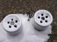 Ahora Coloque los bordes con una capa de espuma encima de horno limpiador en una bolsa Ziploc y cerrar firmemente para asegurar que todo el cromo se disuelve, deja los bordes en la bolsa durante la noche, pero si encuentras terminan antes los saca. Cuando se hacen lavado les apagado con agua caliente. Las llantas ahora deben ser de color blanco o amarillento. Ahora estás listo para pasar al teñido de las llantas.