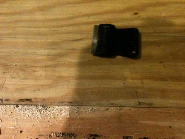 Usando la maquinilla de afeitar recta raspadura la masilla extra fuera de la ventana. Raspar a lo largo de la ventana no empuje hacia abajo!!!