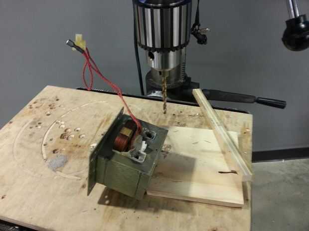 Bueno, eso era inviable. Idea correcta, incorrecta ejecución (en ese momento). Así que aprender de mi error en su lugar. Utilice un taladro para darte espacio y reducir el efecto de relleno de golpeando en las bobinas pequeñas. Si tu transformador es como el mío y tiene aluminio o aluminio recubierto de cobre como el material de la bobina, usando un golpe simplemente empujará las bobinas en el agujero y la seta, es decir, de la Peña a, interior del agujero, haciendo más difícil limpiar el agujero.