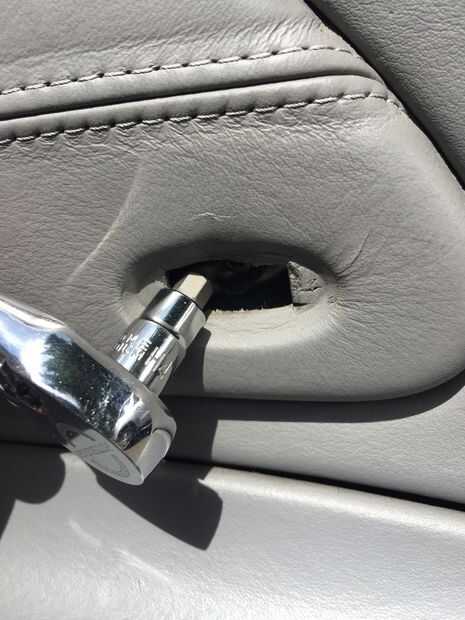 Utilice la llave de maleficio controlador/allen H4 para quitar el tornillo hexagonal. Si el tornillo puede caer en las entrañas de la puerta. Una vez que has quitado el panel de la puerta, debe ser capaz de encontrar el tornillo.